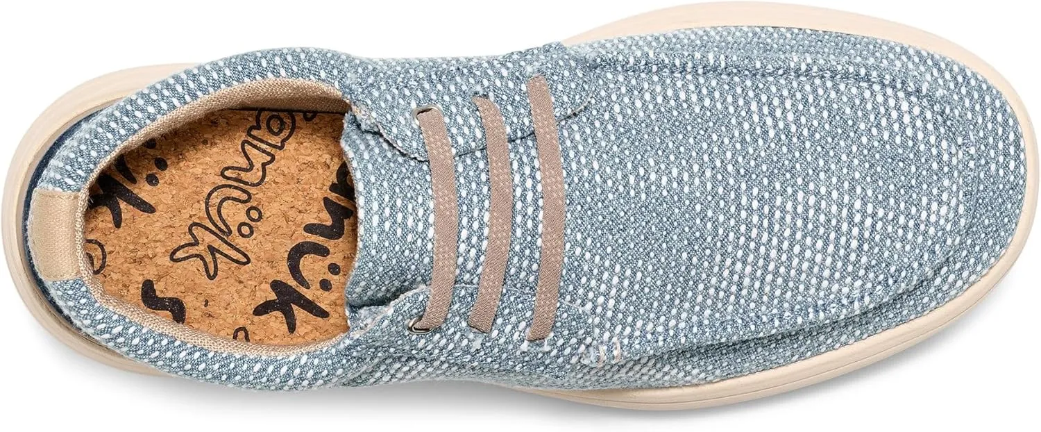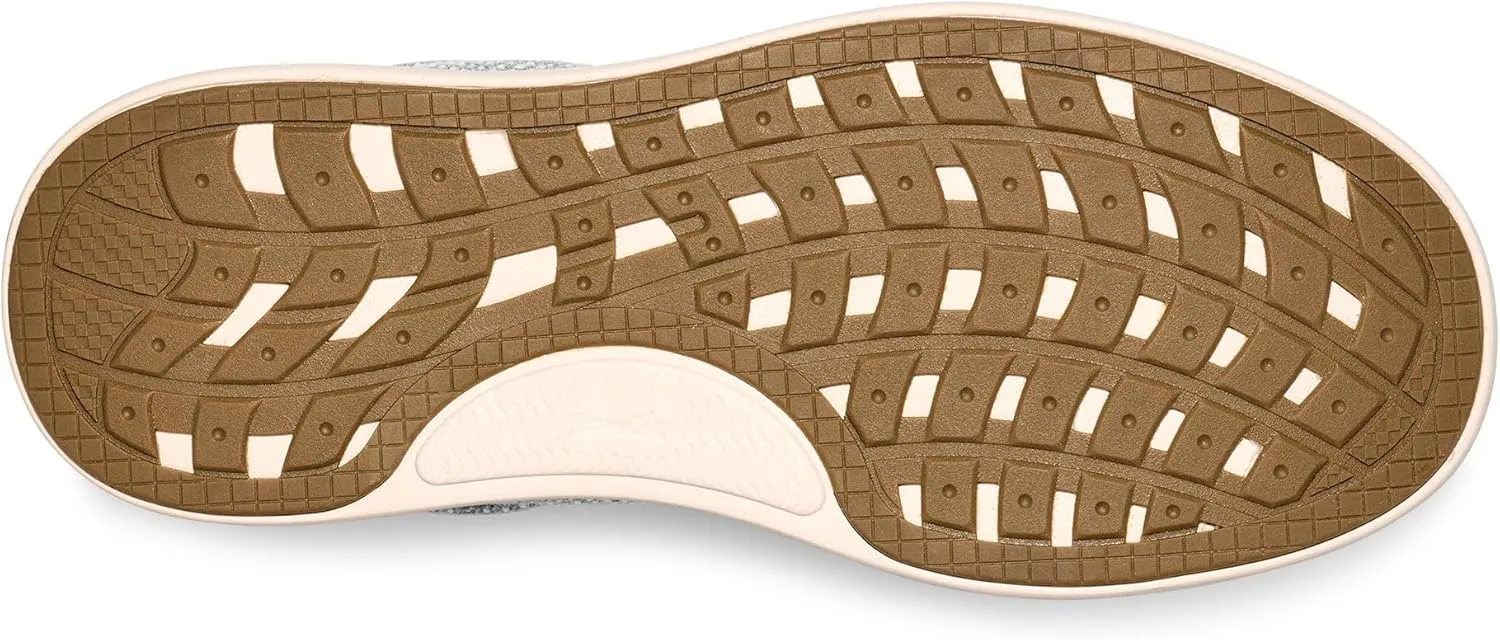 A brand new style featuring a cotton polyester blend canvas upper with TPU heel clip and elastic laces for easy on and off. Naturally antimicrobial soft hemp lining on an anatomically molded, cork lined, removable EVA insole with a Poron heel pad for all day comfort. Non-marking rubber outsole for traction and durability made from 50% recycled rubber.